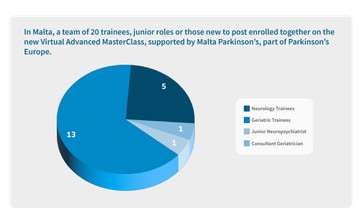 After we developed our Parkinson's Advanced MasterClass for a virtual audience, we found a number of new international delegates joined the Academy - including a team from Malta. Twenty trainees, or professionals in junior roles or new to their posts enrolled together on the Advanced MasterClass, with support from Malta Parkinson's, part of Parkinson's Europe.