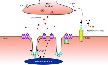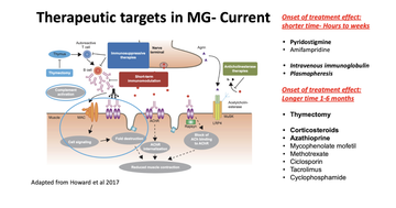 Dr Channa Hewamadduma opened his presentation on some of the new and emerging therapies for MG with a brief overview of the many forms of MG, some diagnostic tests, and a quick reminder of the pathophysiology - using the figure from Howard (2017).