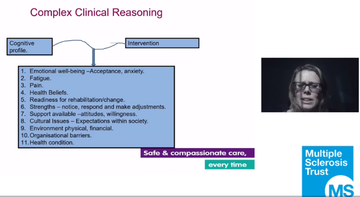 Dr Louise Jarrett, independent nurse prescriber, continued the session by looking at the role of the MS specialist nurse in supporting people with cognitive impairment.