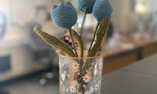 And as for us – we celebrated World Parkinson’s Day here in the Sheffield office with a lunch break challenge: crocheting a blue tulip. The tulip is a global symbol of Parkinson’s, and Parkinson’s UK have shared a pattern for anyone who wants to get involved. We were a little late to send ours off in time for the garden display, but we’re planning to donate them to upcoming Walk for Parkinson’s events, helping to raise funds. We gave it our best shot! It was a fun, slightly chaotic and very wholesome team activity. A few tulips turned out really well, some were a bit more abstract – and for the rest of us, it was more about learning which end of the crochet hook to use!