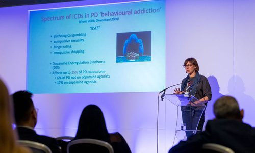 Opened Professor Iracema Leroi (Trinity College, Dublin). Neuropsychiatric symptoms in PD include dementia, psychosis, depression, anxiety, apathy and impulse control disorders, and affect >80% of people living with PD. Professor Leroi noted that the disease is now often more accurately described as a neuropsychiatric disorder.1
