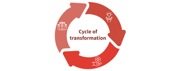 Cycle of transformation: education which impacts healthcare professionals which impacts services which impacts people's lives