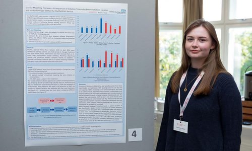 Runner up Natasha Hoyle examined the variation in lengths of time from funding approval to treatment commencement for a range of disease-modifying treatments across different geographical areas in her locality in Sheffield.
