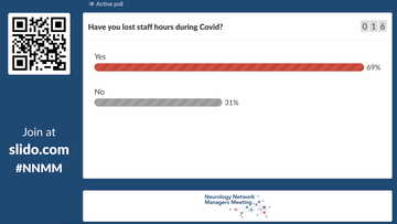 Whilst these redeployments were entirely understandable, worryingly, a sli.do poll at the Neurology Network Managers meeting (Fig 1) found that 69% of previously redeployed respondents had found that staff returning to their original posts had less hours allocated to neurology than previously. Given the current backlog of patients awaiting routine appointments in neurology, this reduction of staff time will further impact the workforce's ability to 'catch up' - and add to the pressures on neurology teams.