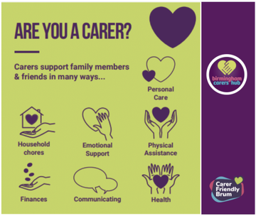 Flyer from Forward Carers Birmingham to encourage those in a caring role to identify this: