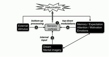 Interruptions in top down and bottom up processes contribute to hallucinations and misperceptions (Fenelon 2012)