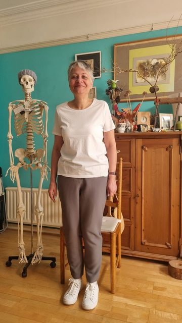 Daiga Heisters, Head of Parkinson’s Academy, taking part in Sit2Stand alongside Ralph the skeleton!