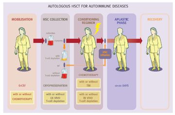 Figure 3: An image mapping the process of AHSCT in an individual with MS referenced to Saccardi R, Gualandi F, Autoimmunity 2008