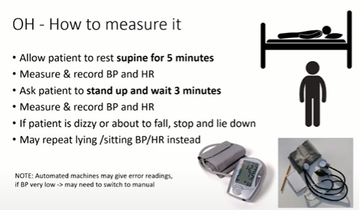 - Attendees will learn about good practice in the assessment of Postural Hypotension including lying and standing blood pressure recording and bone density management