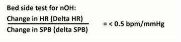 Patients with neurogenic orthostatic hypotension characteristically have no compensatory increase in heart rate ‒ which is usually obvious without having to do the calculation.