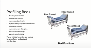 Profiling beds also have considerable benefits in improving staff safety, reducing nursing time, and maintaining patient health and wellbeing ‒ as illustrated in the following figure. This shows the two positions most commonly used for patients admitted with Parkinson’s disease. However, it is essential that nursing staff make use of a wide range of positions to help ensure that these patients do not deteriorate.