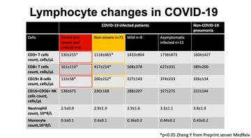 Figure 2: Lymphocyte changes in COVID-19 as sourced from Zheng Y, via Preprint server MedRxiv