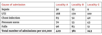 Table 2: number of admissions per 100,000 from community to acute hospitals due to complications