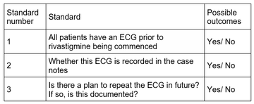 Table 2 – showing if standard we’re meet for the patients that we newly commenced on rivastigmine in clinic.