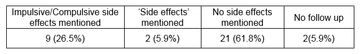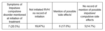On looking through the GP notes advice to the patient was often recorded as ‘side effects’ and therefore not always obvious whether this meant impulsive or compulsive behaviours had specifically been spoken about. The results are therefore recorded separately as when ICD was specifically mentioned or when ‘side effects’ were noted.