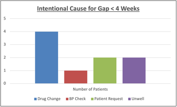 However, the total number of ‘gaps’ between all the appointments of patients in Group D&N = 360. 20 ‘unintentional’ close follow-ups only represents 5.55% of all the gaps between all appointments.