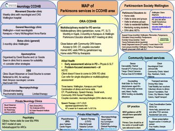 The intended audience is all those who provide Parkinson’s care within the catchment. It became apparent that no one delivering Parkinson’s-related care had a clear and detailed appreciation of all the services available, prior to the Map. Two addenda to this project will be a version for patients/ carers; and to convert the Map to a wholly digital form with hyperlinks to all referral processes.