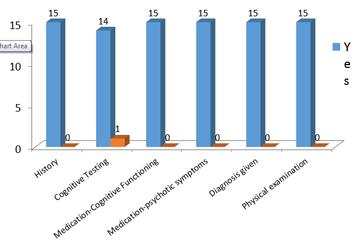 Fifteen cases were audited (9 female, 6 male, 63-86 years) from the Memory Assessment Clinic in Newport Older Adult services. These patients had been seen within the team in the last 12 months. Data was collected by the audit lead via the analysis of case notes in relation to referral, diagnosis, types of assessment carried out, tests at time of presentation, information given to family following diagnosis, patient documentation and medication.