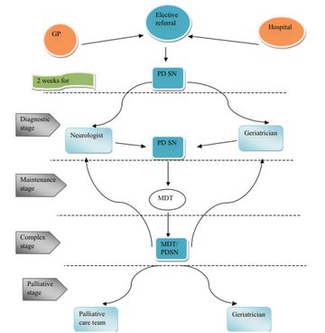 Patients currently receive uncoordinated care and there is no clear pathway for GPs in referring PD patients to the appropriate service. Acute medical and surgical teams within SUH also need to know where further advice and consultation can be obtained when it is needed.
