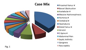 When reviewing the notes I looked for issues with drugs such as incorrect prescribing and missed doses, use of our excellent PD nurses, use of bridging therapy in patients who were made NBM and any other instances of good or poor practice. We had a group of nine males and 16 females with an average age of 85 years. The patients were predominantly orthopaedic, which is understandable given the increased fall to fracture risk in this group, but there was a wide variety of other presentations (see fig.1). The average length of stay was 17.4 days.