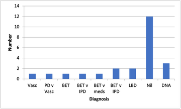 Tests ordered | 8 (7 neuro-imaging, 1 bloods) | 8/24 (33%) | 8/19 (42%) | 15 (9 neuro-imaging,1 bloods ,1 MSU) | 15/32 (46.8%) | 10/17 (58.8%) |