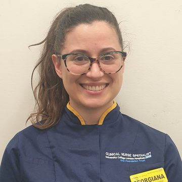 Georgiana is the myasthenia clinical nurse specialist based at the National Hospital for Neurology and Neurosurgery in London. She finished her BSc in Nursing in Greece and moved to the UK in 2016. She worked in complex neurological and neurosurgical areas, before becoming the myasthenia clinical nurse specialist in 2021. Georgiana is currently a trainee advanced clinical practitioner and is passionate about raising awareness of myasthenia among healthcare professionals and enabling them to feel more confident when looking after this group of patients.